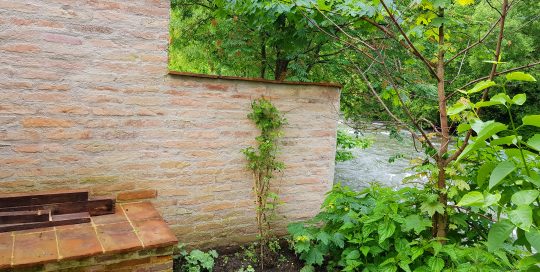 Naturstein Mauer aus Backsteinen